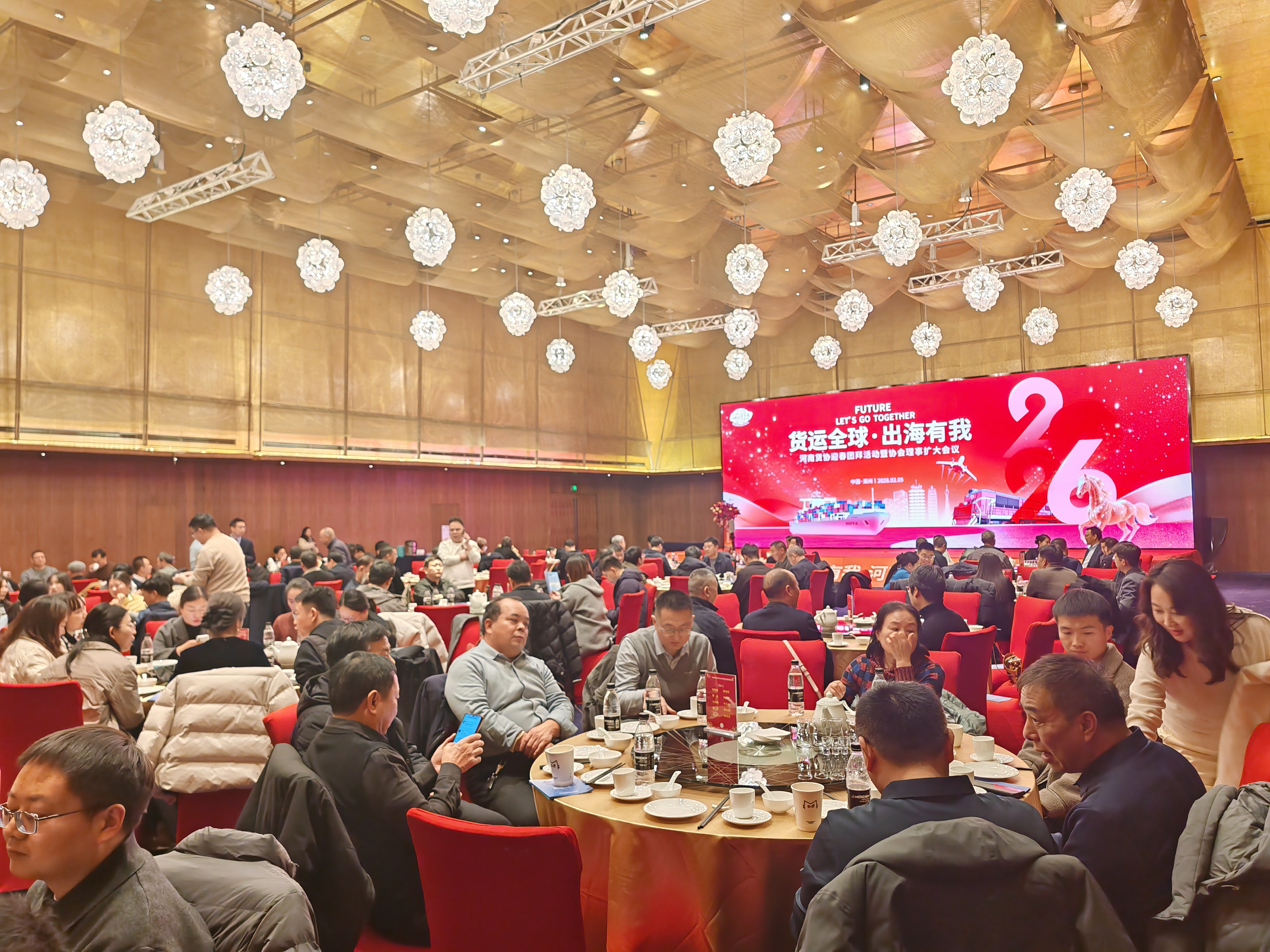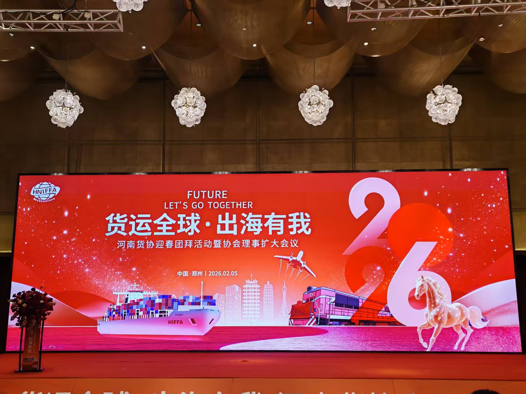 2026年2月5日晚六时,郑州建业艾美酒店三楼华灯璀璨、宾朋云集,“货运全球·出海有我——河南货协迎春团拜活动暨协会理事扩大会议”在此盛大启幕。此次活动由河南省货运协会主办,旨在凝聚行业力量,共商货运出海大计,推动河南货运行业高质量发展。宗圣集团董事长曾占国先生受邀出席,与众多行业精英共同见证这一重要时刻。