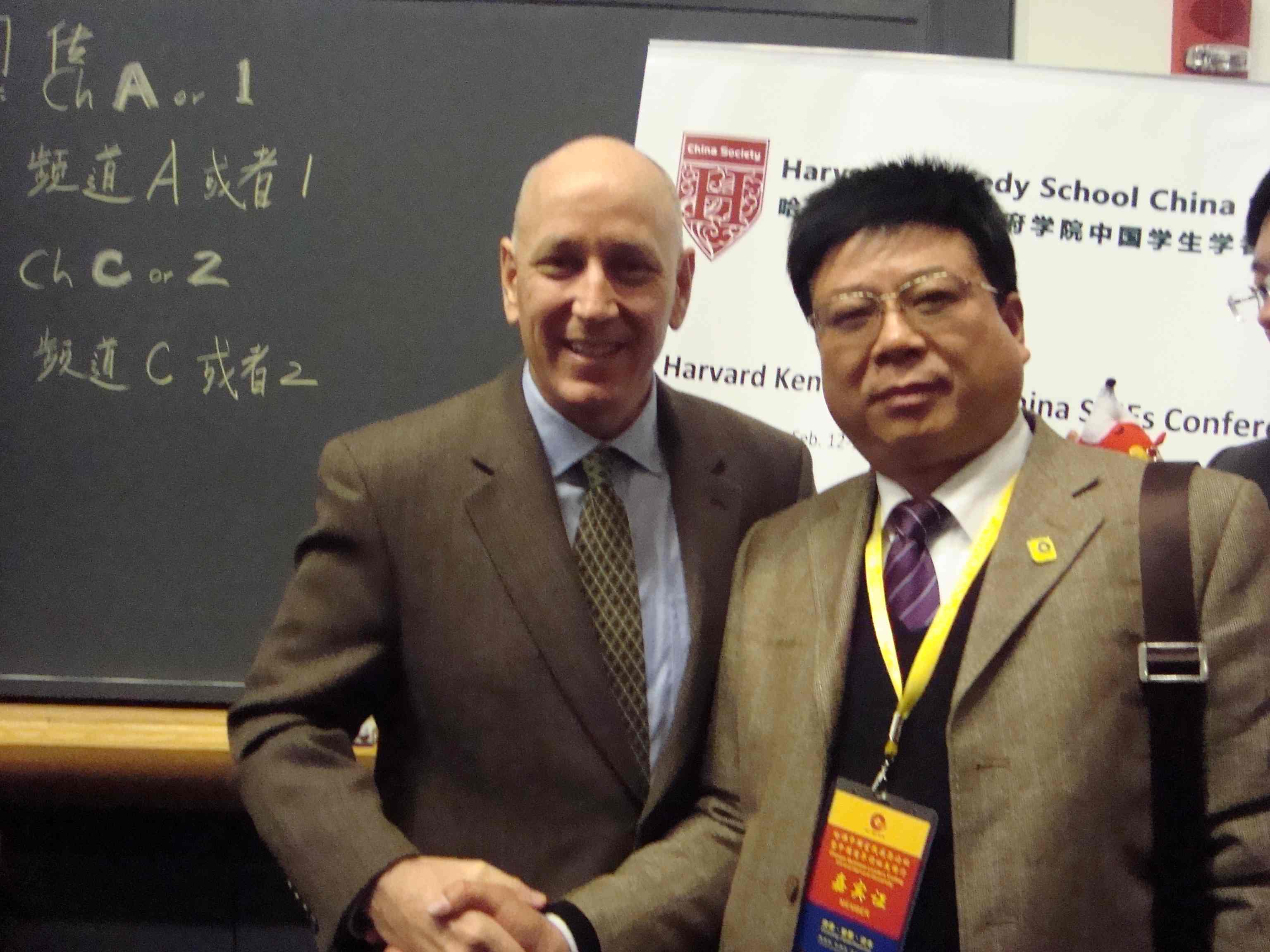 曾占国董事长和哈佛大学肯尼迪政府学院房地产金融学教授爱德华.摩骧特合影