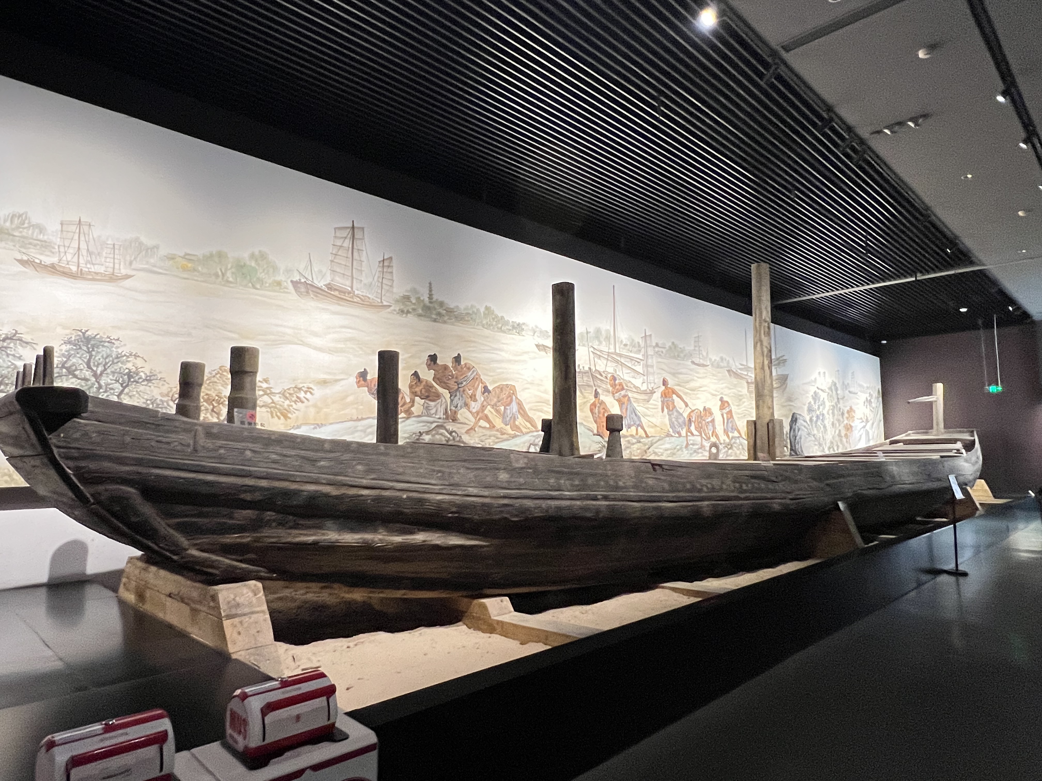 在“千年运河,万物通济”展厅,团队成员驻足于明清古沉船“运河一号”前。这艘长20米、13舱的漕船,曾满载陶瓷、丝绸梭于南北水系,其设计之精妙、载货量之惊人,令现代人惊叹。